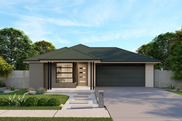 Modern living on smaller lots. This compact 4-bedroom home offers a master suite with a large walk-in robe and ensuite, an open-plan kitchen, living, dining area and a walk-in pantry. Indulge in the spacious bathroom featuring a freestanding bathtub. Enjoy the efficient layout and maximized space throughout the home.